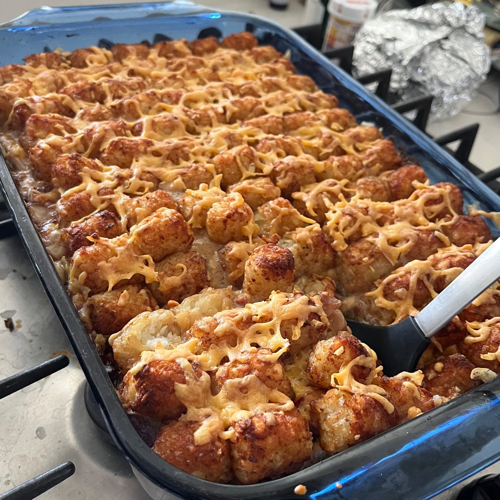 Pat Benatar is a Kielbasa and Cabbage Tater-tot Casserole